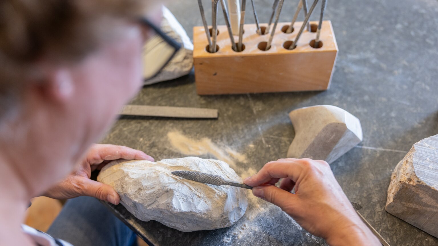 Entdecke deine künstlerische Ader beim Bildhauen in Speckstein - angeleitet von versierten Künstler*innen.